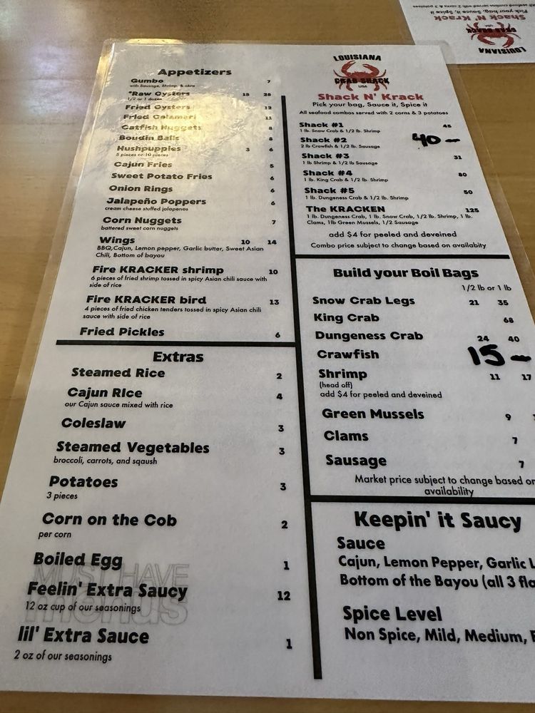 Louisiana Crab Shack is a Cajun/Creole seafood gem located in Austin, TX, offering a range of delicious dishes and a welcoming atmosphere. The menu features enticing appetizers like crispy Boudin Balls and Cajun Fries, as well as mouthwatering Po'Boys such as the Catfish and Fried Oyster options. For those looking for a lighter option, the Fried Chicken Salad and Grilled Chicken Salad are flavorful choices. Customers praise the friendly service and the delightful food, with highlights including the gumbo, catfish nuggets, and signature seafood boils. While some dishes like the crawfish and sausage may have mixed reviews, the standout dishes like the snow crab and boudin balls receive high praise. With options for outdoor seating, takeout, and delivery, Louisiana Crab Shack is a must-visit for those craving authentic Cajun seafood flavors.